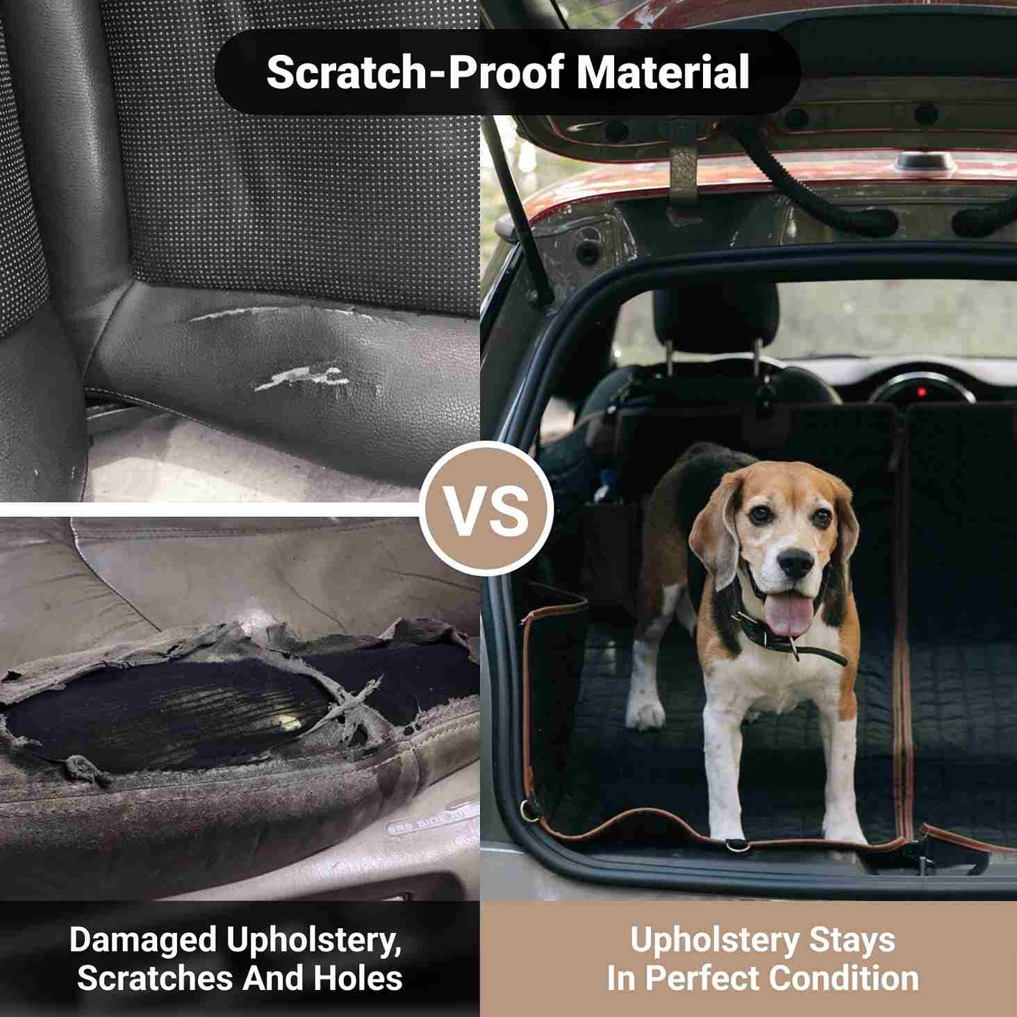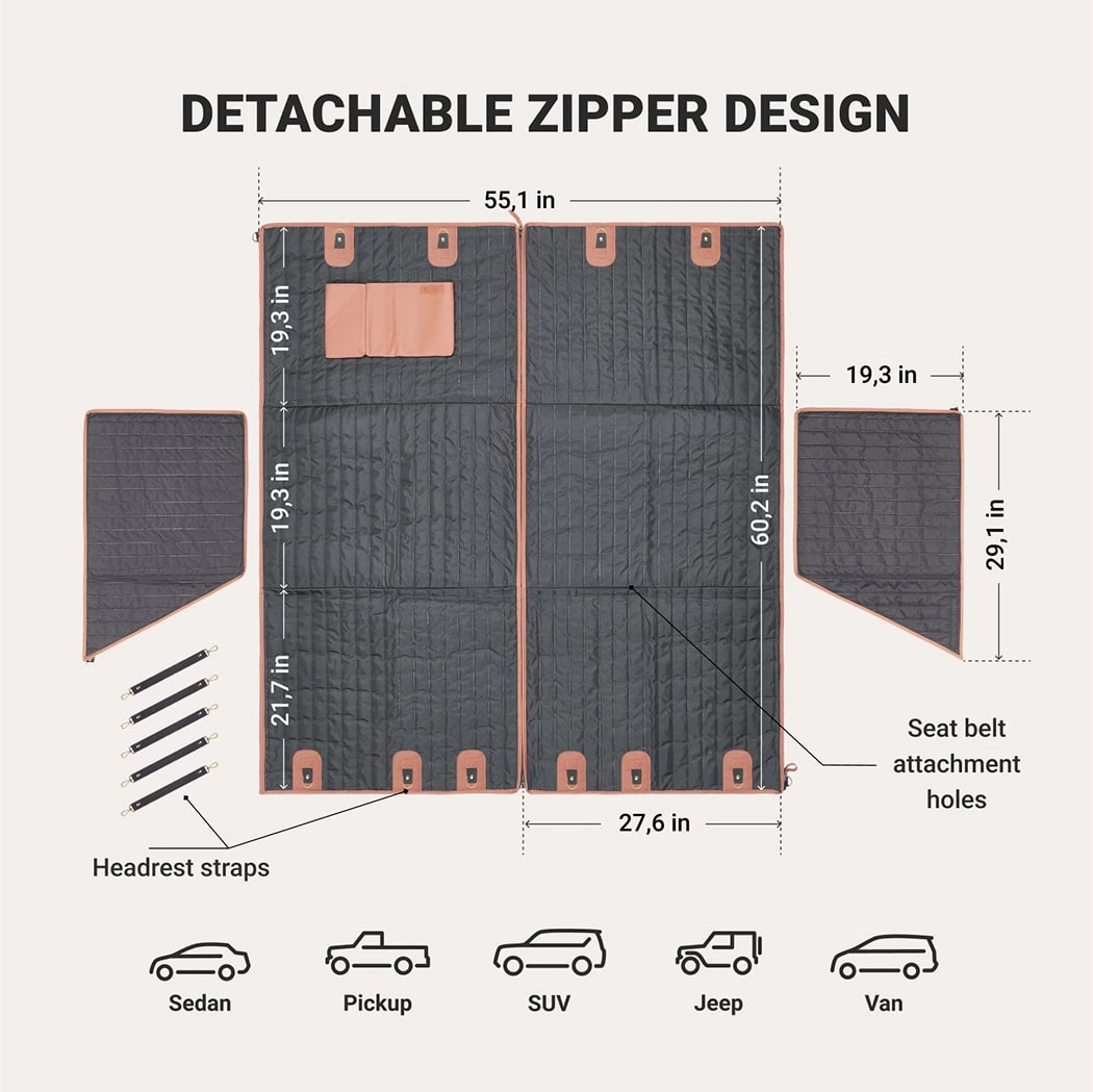 This car dog hammock fits most vehicles with detachable headrests. It also features a unique split design – just undo the zipper in the middle to save space and use this dog hammock on one side of the seat. And when not in use, you can easily fold it up and carry conveniently by the handle. Perfect for travel lovers!