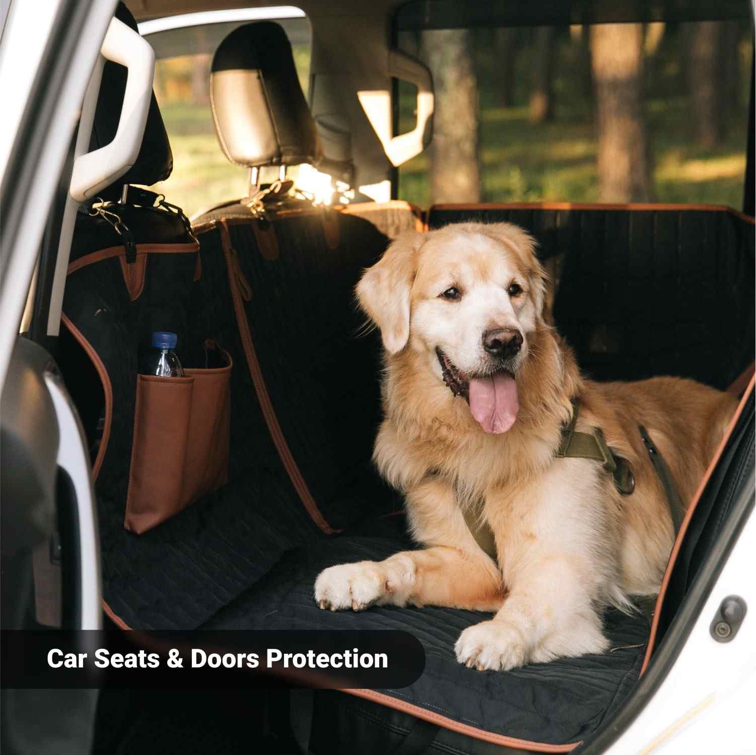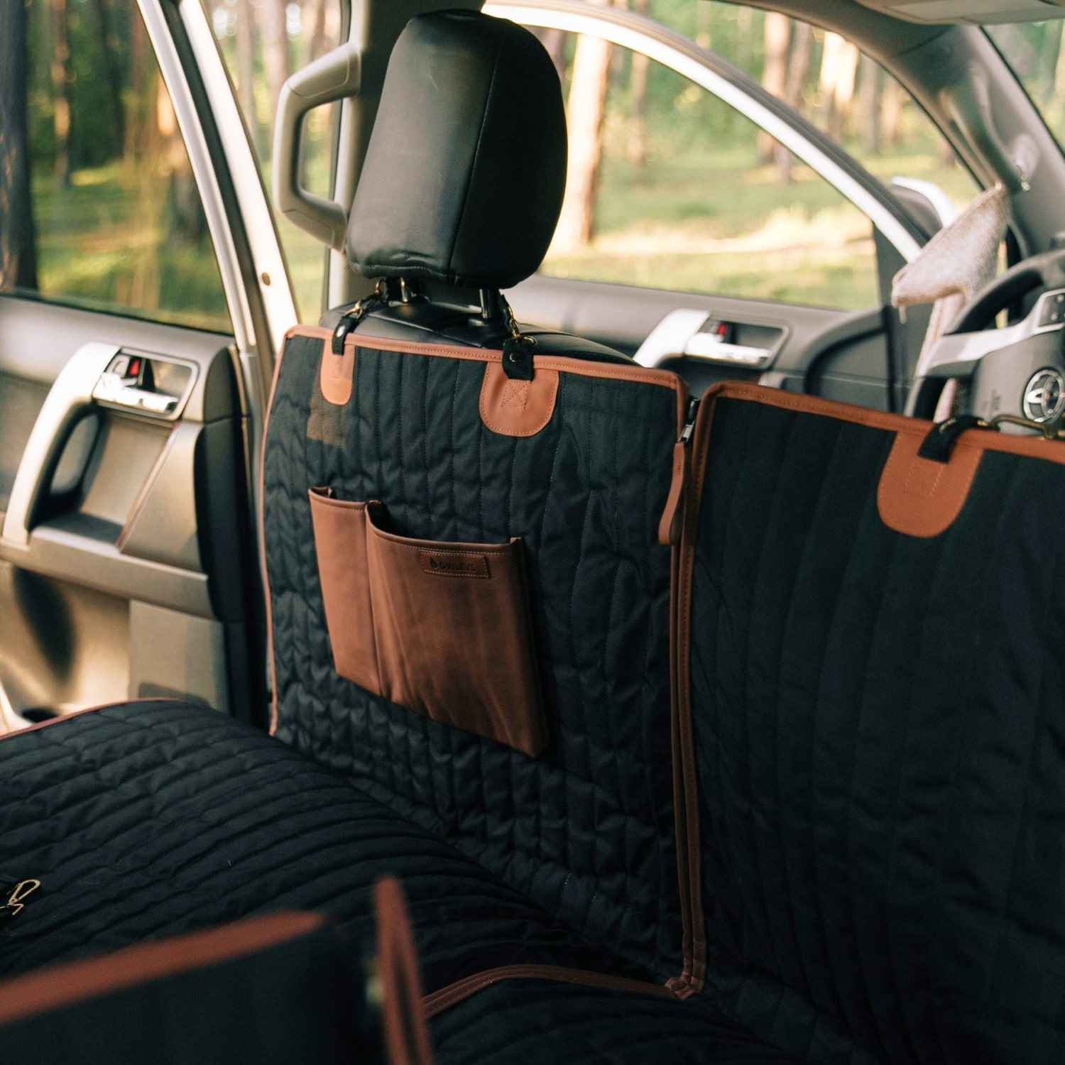I can’t believe I used anything other than this one to protect my leather seats from my doggo! Plus she loves this one better than the last one! Keeps her toys from falling onto the floor of the vehicle. The underneath is grippy so the cover doesn’t slide around giving my dog more traction while inside. It’s water resistant and has a pouch where I like to keep her important things like collapsible water bowl and leashes.