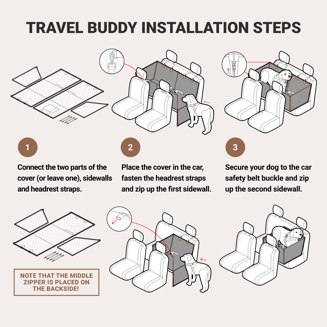 With strong metal clips, smooth running zippers, and solid headrests straps, this dog hammock is super simple to set up in a few minutes – just attach it to the front and back seat headrests!