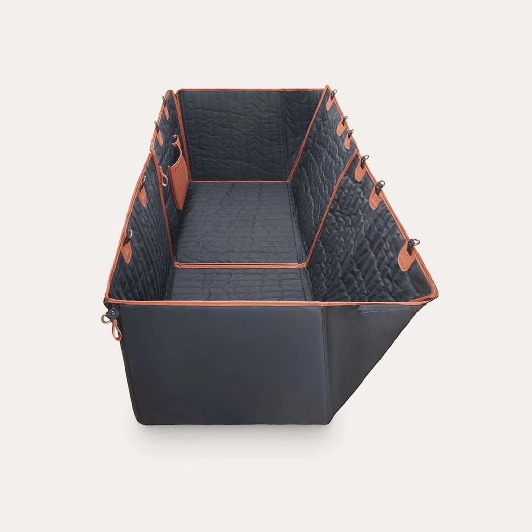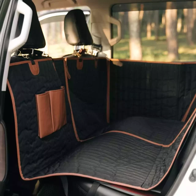 This product exceeded my expectations! It fit perfectly in the back of my Ford Escape, buckled nicely around each headrest, and doesn’t slip and slide when my doggo is hanging out on it. Offers good protection for my car seats and looks sleek too. Highly recommend!