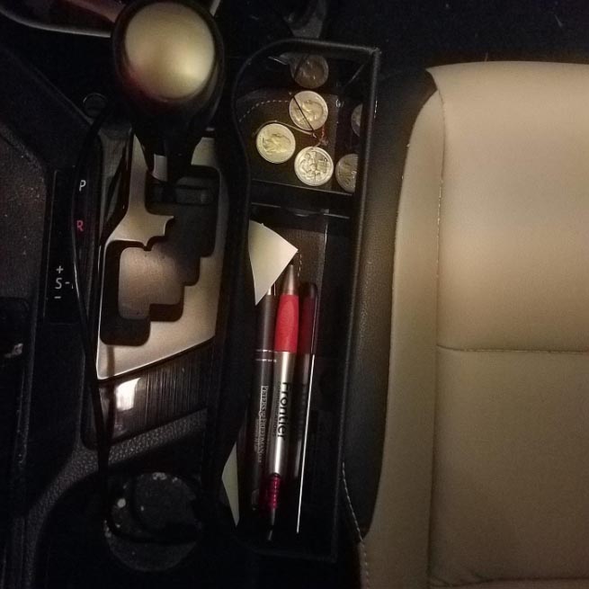 Love these storage boxes. They not only fill the gaps between the seat and console, but they also have really helpful organization areas.